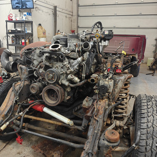 I forgot V-bands, or i'd have the cab back on today. Working on a rust-free truck here is rare and making things go faster.